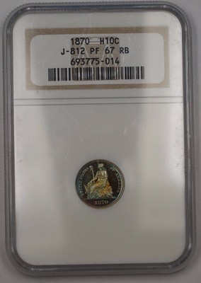 1870 Proof Copper Half Dime 5c Pattern Coin J-812 NGC PF-67 RB Toned WW
